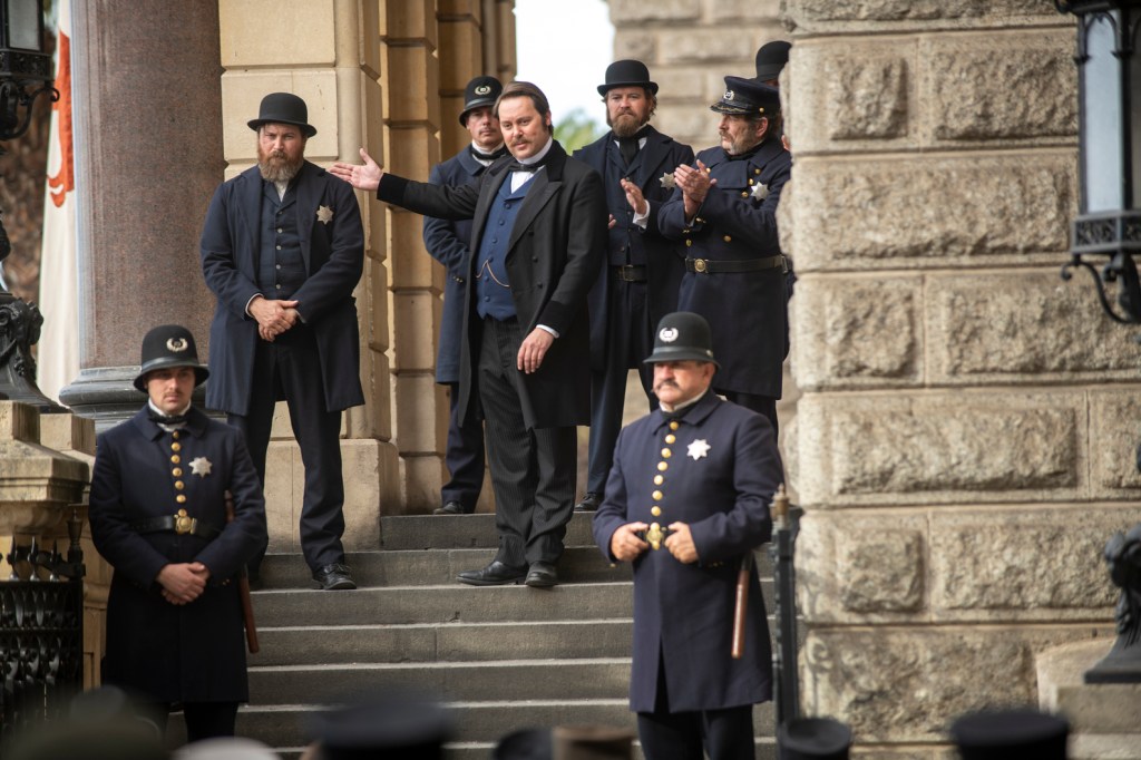 Cashing in on the button pushing potential of the entire situation, Mayor Blake gives a rousing speech, lauding San Francisco’s police force for their noble efforts in bringing such a monstrous animal to justice. Big Bill is gifted the key to the city and Leary spits in the street from afar. Deputy Mayor Buckley starts chatting him up, pointing out all the spheres of influence he holds control over, not so subtly suggesting that rallying voters to his cause could spell a political future.
