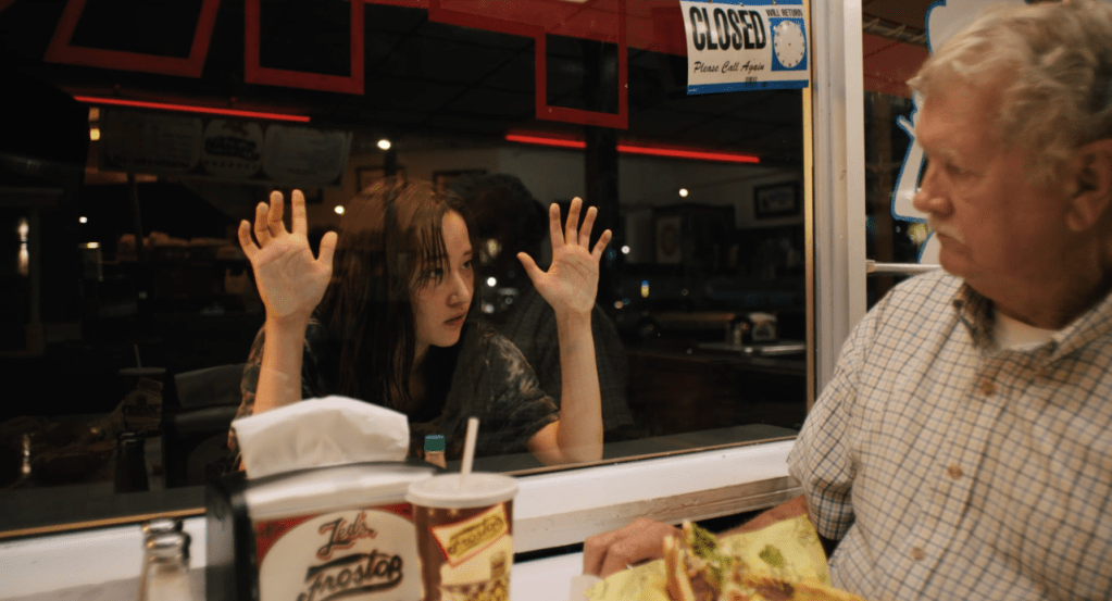 I wondered if you were going to dive deeper into with her backstory when Trump showed up on the news—which reminded me of “Burning,” and made me reflect on how this film was more directly, politically adjacent to society, as opposed to your other two movies, feeling a bit more removed in their own worlds—but then you cut immediately from that scene to the political asylum note in her file which is all we need to know, really, but that beginning chapter is still there.