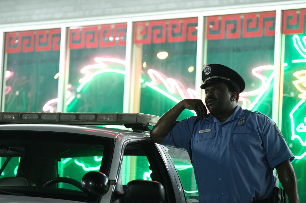 Like always, the intricacy of details in Amirpour’s film pulsates with imaginative verve and street-wise verisimilitude top to bottom, from the music choices to the set decor — a mix of in your face and hidden in plain sight signs, from an eclipse tie-dye tee that becomes an important prop, to a wall of RAW papers lining a plexiglass wall beside a convenience store register. Actors Craig Robinson and Ed Skrein — as earnest New Orlean’s cop, Officer Harold, and Fuzz, a tatted-up, part-time liquor store dealer — strike a perfect balance between archetypical and fresh, adding layers of both sly humor and emotional complexity to the film.